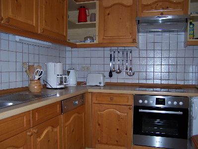 Die Küche ist komplett eingerichtet mit Geschirrspülmaschine, Mikrowelle, Wasserkocher, Kaffeemaschine, Eierkocher, Cerankochfeld, Backofen, Kühlschrank mit 3*-Gefrierfach usw.
